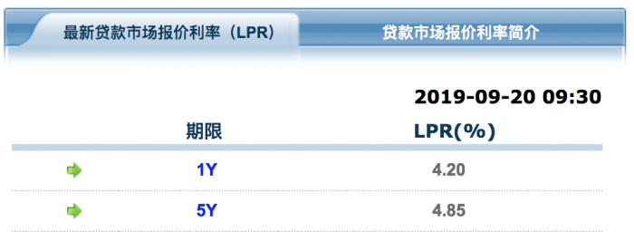 2019年9月20日上午九点半,改革后的贷款市场报价利率(LPR)迎来第二次报价。据全国银行间同业拆借中心公布的LPR报价显示,十八家报价行给出的第二次一年期LPR报价为4.20%,与第一次LPR报价的4.25%相比继续下行5BP;五年期LPR报价为4.85%,环比上月持平。