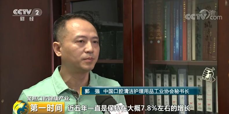 中国口腔清洁护理用品工业协会秘书长 郭强:我们国家口腔类产品,近五年一直保持7.8%左右的增长,市场规模约240亿元。再过五年,我国牙膏市场应该能达到300亿元左右的规模,整个口腔清洁产品的市场大概能到350亿元的规模。