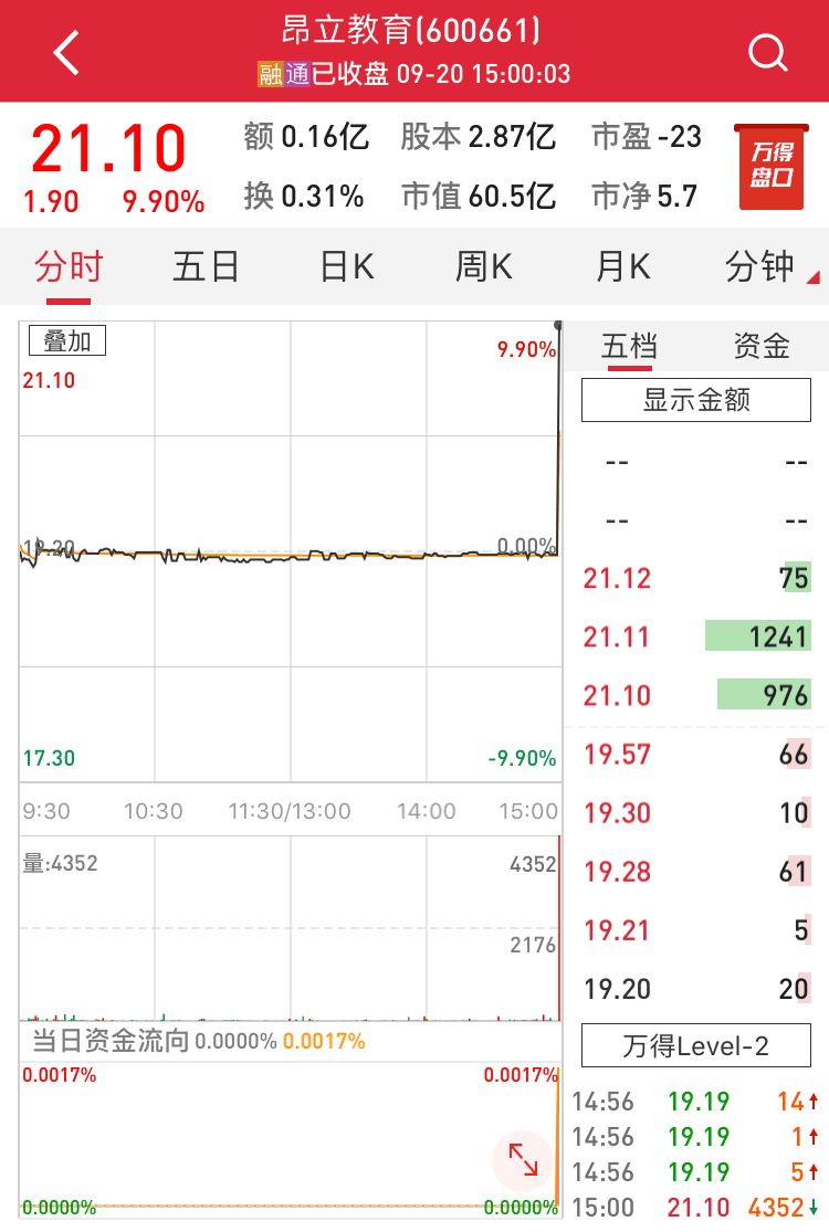 万和电气尾盘集合竞价股价上涨10.02%,从下跌0.62%拉升至上涨9.40%;昂立教育尾盘集合竞价股价上涨9.95%,从下跌0.05%拉升至上涨9.90%;国城矿业尾盘集合竞价股价上涨5.44%,从上涨1.36%拉升至上涨6.80%。