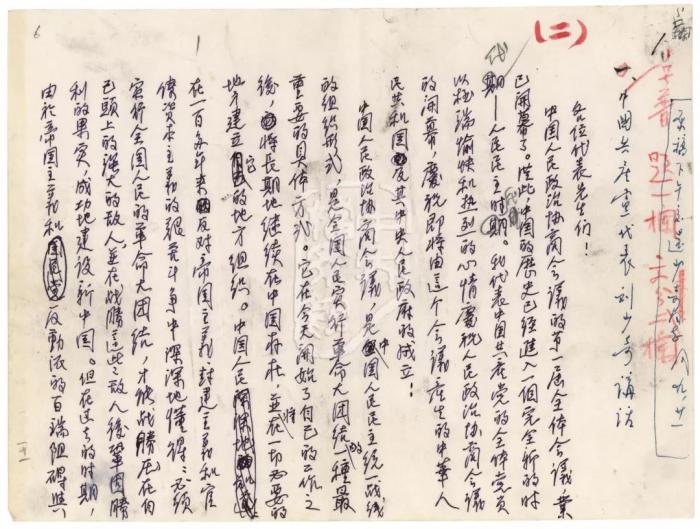 刘少奇在中国人民政治协商会议第一届全体会议上的讲话:
