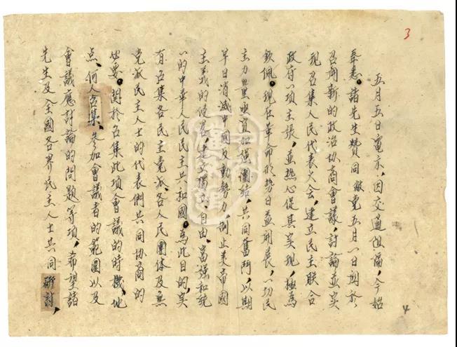 毛泽东关于召集新政协会议的时间、地点等问题给李济深、沈钧儒等的电报: