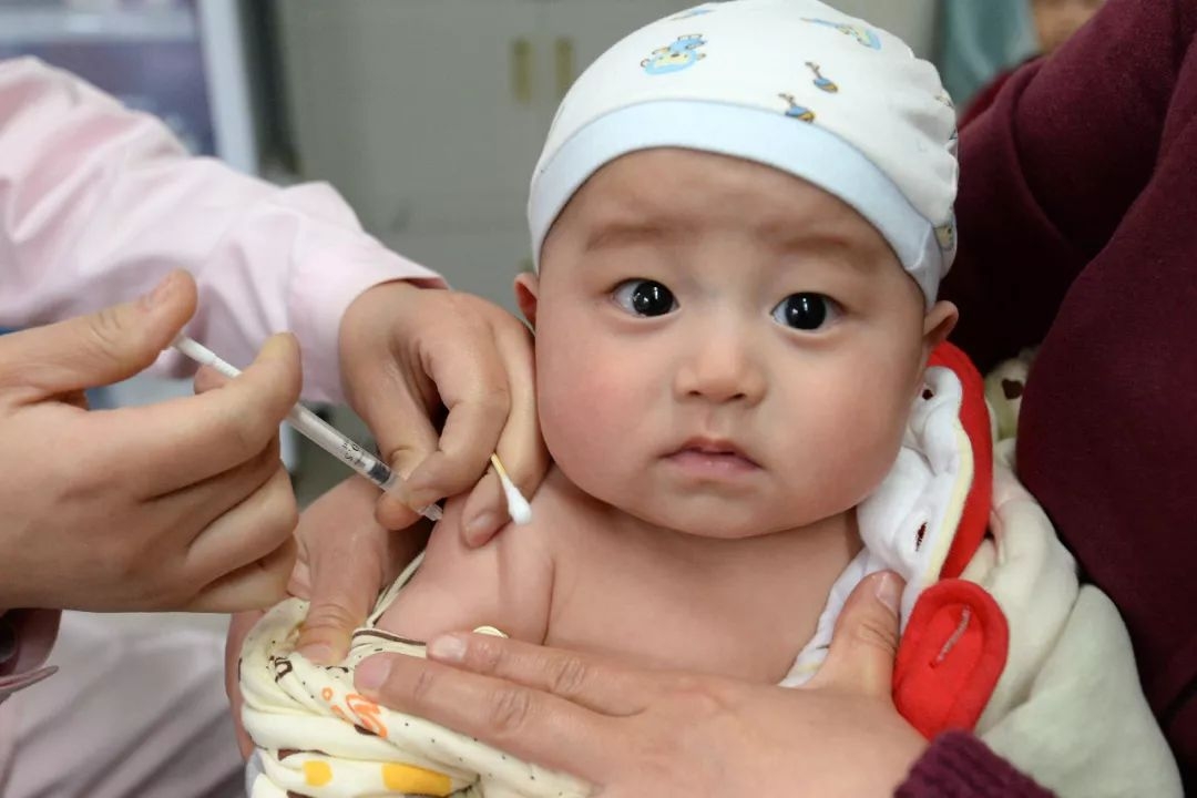 2019年4月25日,在河北省邯郸市峰峰矿区妇幼保健院,一名儿童在接种疫苗。(新华社记者郝群英 摄)