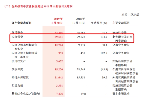 上市险企2019年中报显示,人保财险上半年末应收保费及代理账款为669.85亿元,较年初增幅达119.31%;太保产险应收保费178.88亿元,较年初增长80%;平安产险应收保费590.46亿元,较年初增长16%。