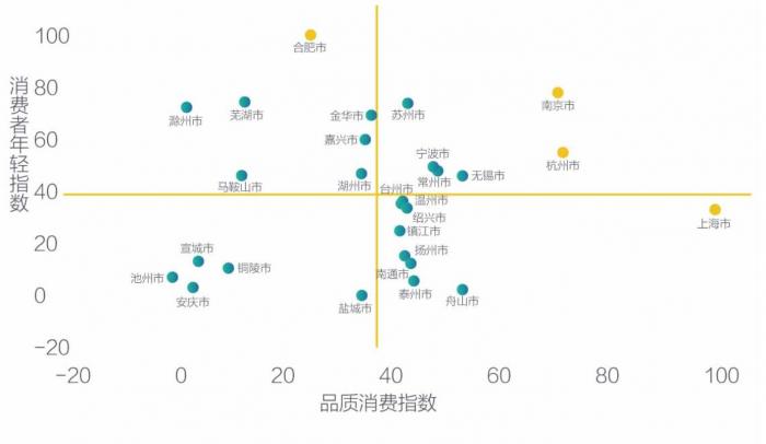 在反应消费者年龄结构的消费者年轻指数上合肥居首,芜湖与滁州分列第3和第5位。