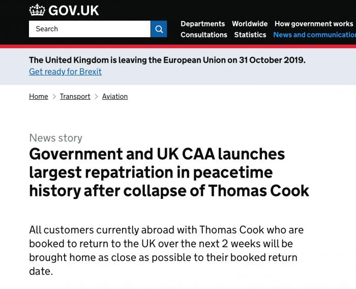 英国政府不得不介入收拾“烂摊子”,英国政府宣布,预定了托马斯·库克航班在两周内回英国旅客,政府将包机将这些滞留海外的旅客免费接回英国,政府称这将是和平时期英国政府发起的最大规模的遣返回国。