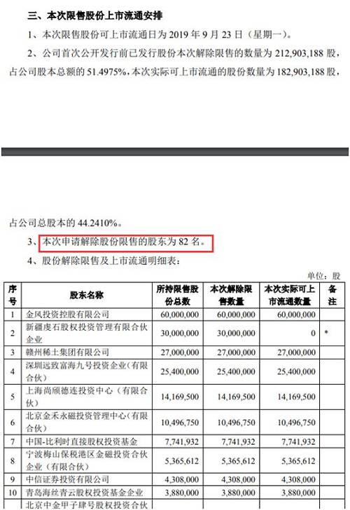 另一方面,金力永磁本次申请解除股份限售的股东为 82 名,非常分散,且其中多数为自然人股东和投资类股东,套现压力相对较大。