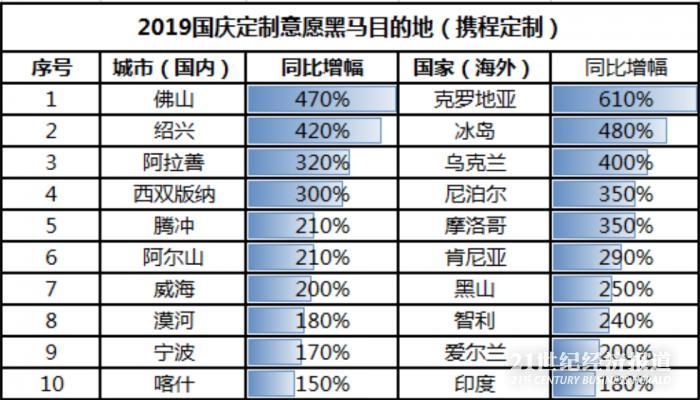 在2019年黄金周超10万张需求单中,小众目的地出行意愿增长成黑马。国内的佛山、绍兴、阿拉善、西双版纳、腾冲、阿尔山、威海、漠河、宁波、喀什,增长150%以上,特别是佛山顺德的美食之旅,成为国庆定制的大热门,而绍兴的滑雪之旅也成为江浙沪周边游客的新宠。海外方面,今年大热的美剧权游取景地的冰岛、克罗地亚定制需求单猛增,而乌克兰、尼泊尔等目的地也有300%以上的增长。小众目的地定制成为新的发力点。