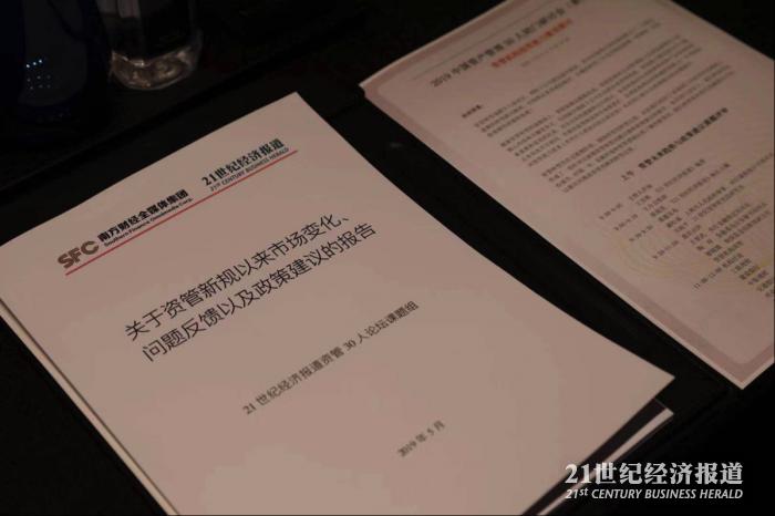 9月21日,南方财经全媒体集团旗下21资管研究院举办的“2019中国资产管理30人闭门研讨会(秋季)”在北京召开,会上,对由21世纪经济报道旗下资管30人论坛发起的课题《关于资管新规以来市场变化、问题反馈以及政策建议的课题报告》进行了评审,上海市人民政府参事、央行调查统计司原司长、央行参事盛松成,央行金融稳定局局长王景武,金融稳定委员会办公室秘书局局长陶玲,银保监会创新部副主任廖媛媛等监管专家,以及中银理财董事长刘东海、工银理财总裁唐凌云、建设银行集团资管部总经理鲁秀艳、华夏银行副行长李岷、兴业银行资产管理事业部总裁顾卫平、光大银行资产管理部总经理潘东、浦发银行资产管理部副总经理杨再斌、江苏银行资产管理部总经理高增银、北京银行理财中心总经理 季雨、汇添富基金总经理张晖、浦银安盛基金副总经理李宏宇、光大控股董事总经理王海等约二十家资管机构高管和代表出席了会议并进行发言。