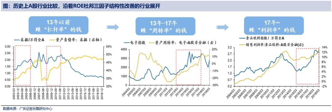 A股历史上中期赛道优选往往沿着ROE杜邦三因子结构性改善的行业展开。13年以前经济加杠杆的增量时代,A股赚“加杠杆”的钱;13-17年杠杆率难以持续提升,实体供给侧改革下A股赚“周转率”的钱。金融供给侧改革下,杠杆率与周转率趋势性改善的行业寥寥,A股寻找赚“利润率”的钱成为相对最优解。