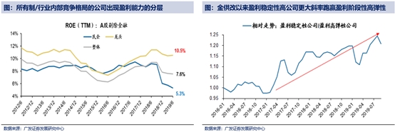 具体来说,流动性分层:“大河有水小河满”的时代一去不复返。银行间流动性分层体现在大行与中小行、银行与非银之间的分层。自5月下旬银行接管事件以来,大行的流动性整体很充裕,但中小行和非银机构的流动性出现紧张,这背后就反映了不同金融机构的信用在被重定价。实体领域流动性分层体现在不同信用主体的融资成本分化是加剧的。股票市场流动性分层体现在流动性向优质公司集中。从股票供给端来看,科创板推出并试点注册制,配套以退市制度完善,A股将经历一场优胜劣汰;从股票需求端来看,长线投资者话语权不断提升,A股投资者结构将发生深远变化。风险定价分层:中国过去融资结构中风险定价缺“锚”,风险定价体系以所有制、行业、规模为主要划分依据。金融供给侧改革“让市场在资源配置中发挥更大作用”未来将以更为细致的企业自身的信用等级、经营风险、盈利稳定性、产业竞争优势等优劣属性来划分风险等级,优劣公司分化加剧。盈利偏好分层:流动性、风险定价分层必将带来盈利偏好分层。如果理解了这些,就能理解为什么金融供给侧改革以来,盈利稳定性高的公司以更大的斜率跑赢盈利弹性高的公司,投资者越来越注重盈利的长期稳定性而非短期高弹性。所以争议“抱团取暖”可能还没有真正理解三个分层背后是筹码结构在分层。