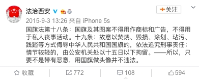 陕西省西安市司法局官方微博也曾表示,只要不是带有恶意,用国旗做头像并不违法。