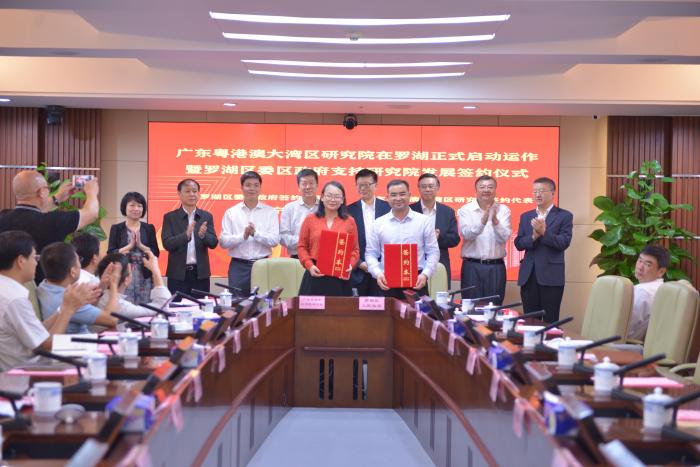 启动仪式上,研究院与罗湖区政府签订了《深圳市罗湖区支持广东粤港澳大湾区研究院框架协议》,罗湖区委副书记、代区长刘智勇、深圳报业集团党组书记、社长陈寅、南方财经全媒体集团党委书记、董事长任天阳等领导出席并与到场嘉宾共同见证了签约仪式。