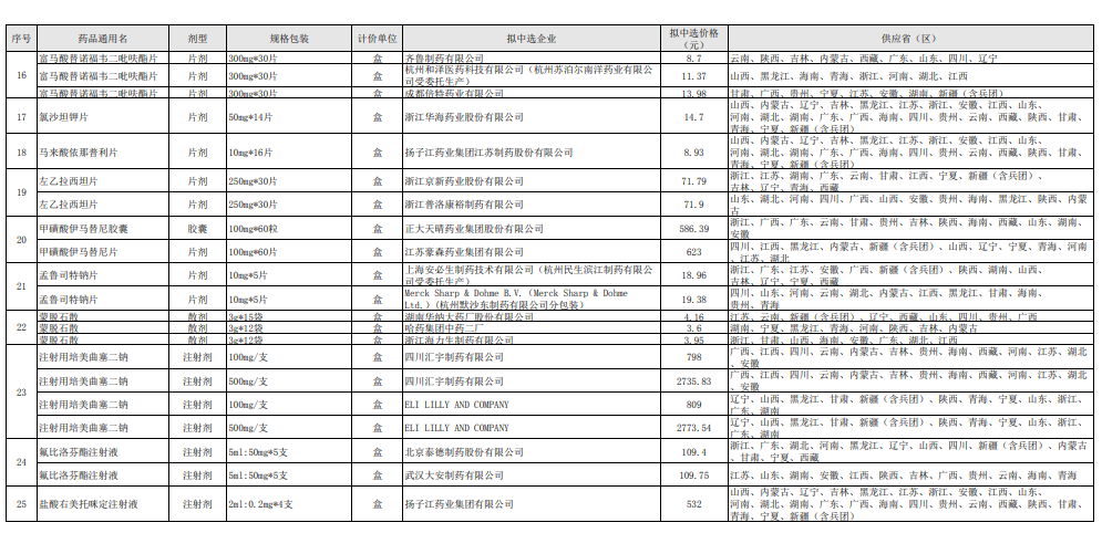 “4+7”扩面拟中标结果公示 比去年第一轮中选价格平均降25%