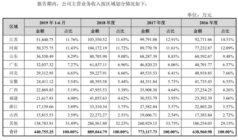 从招股书披露的数据看,爱玛电动车主要销往江苏、河南、山东、广东等省份。