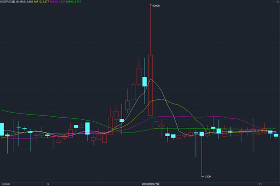 必须要需要指出的是,2018年的国庆节前收益已经是同比历史最低,而今年的国庆节前收益恐会再创历史新低。到下午交易时段,隔夜资金价格始终没有超过3%,而7天期资金价格也3%以下。