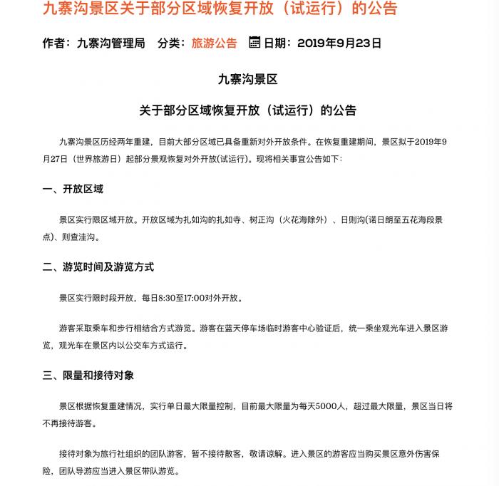 据悉,目前景区实行限区域、限时段开放,单日最大限客量为5000人,实行网络购票且暂不对散客开放。景区官网已发出温馨提示,提醒游客切勿贸然前往。