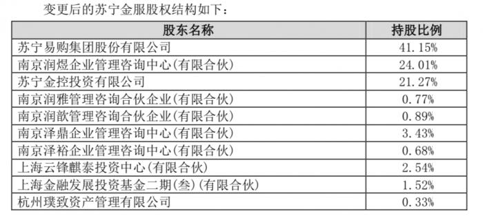 变更后的苏宁金服股权结构如下: