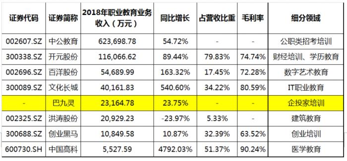 再回到本次重组,巴九灵不乏是资本市场稀缺的职业教育细分领域标的。长久以来,A股教育概念股多为并购而得,近两年随着上市公司传统业务的剥离和全国性教育公司如中公教育(002607)登陆 A 股,纯粹教育标的增多,机构尤其看好政策利好的职业教育和教育信息化两大细分赛道,下游需求强劲。