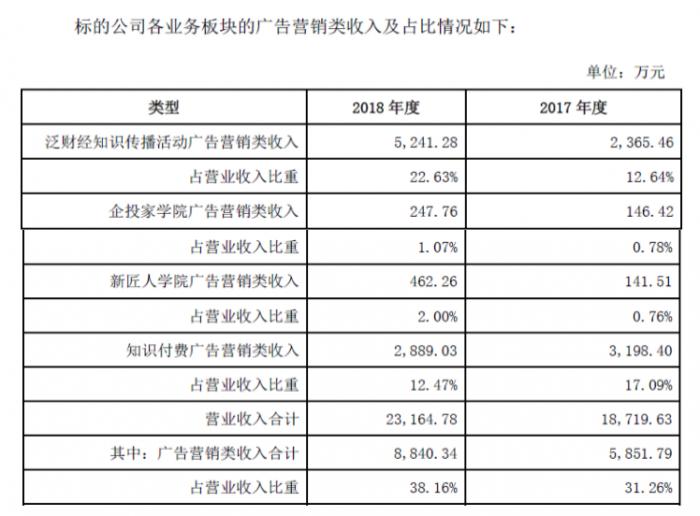 全通教育在问询函回复中表示,收入构成上,巴九灵主营业务收入除直接来源于教育培训外,还包括赞助、公关、广告以及社群电商等;从业务实质分析,赞助和公关附着于标的公司的各类培训课程及社群活动,广告系知识付费业务的增值收益,广告营销类收入系在标的公司开展主业过程中派生而来。