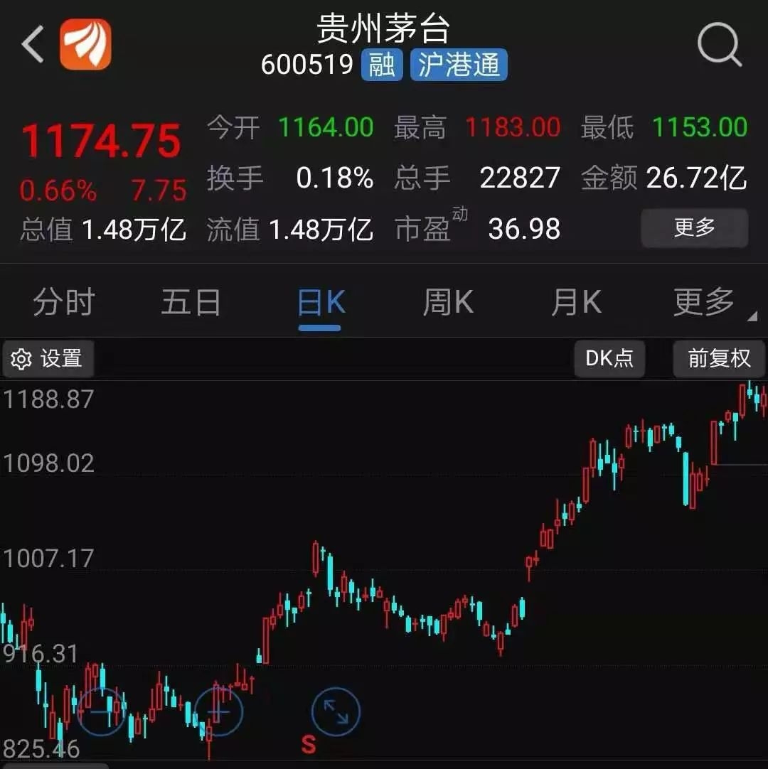 9月24日,茅台股价盘中再创历史新高——1184.90元/股,并登顶A股流通市值第一股。9月27日茅台股价报收1174.75元/股,市值1.5万亿元。