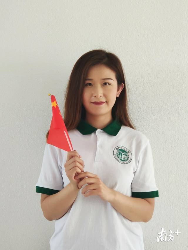 “扎根大湾区,誓与祖国共奋进!”吉林大学珠海学院校青年志愿者协会主席陈茵怡向祖国母亲深情表白。