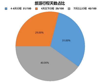 这其中,选择4-6天行程的旅客人数为31%,超过40%的游客选择了7天以上的行程,通过拼假的方式充分享受十一黄金周。仅不到3成的人选择4天以下的出游行程。