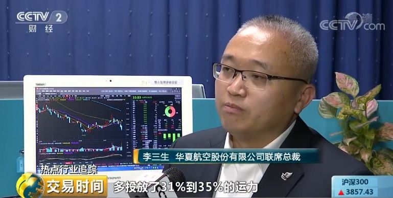 华夏航空股份有限公司联席总裁 李三生:我们今年的黄金周比去年多投放了31%到35%的运力,可销售的座位大概增加了40%,我们还有两架飞机做备份运力。
