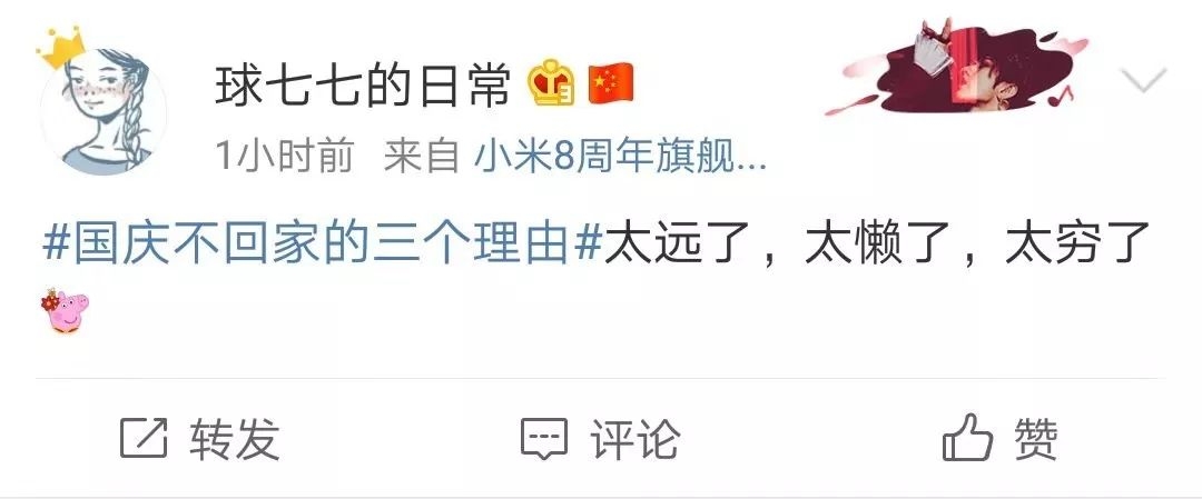 然而,另外一群不放假不回家的网友也没有忘记怒刷存在感。#国庆不回家的三个理由#上了今天的微博热搜,引起网友热议。