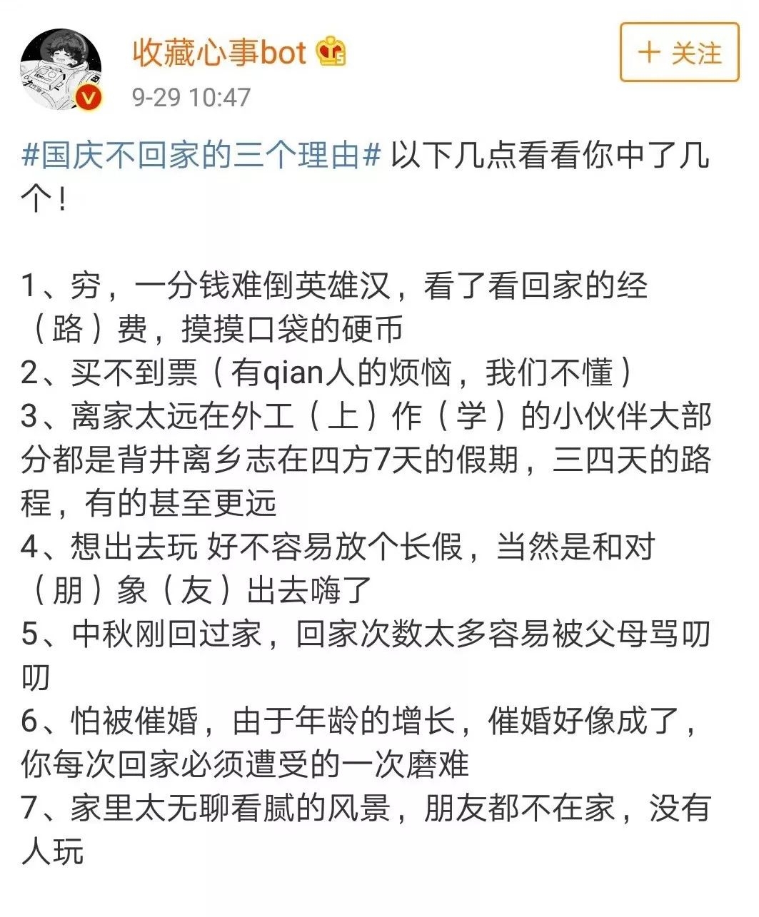 国庆为啥不回家?有人总结了3大理由!网友:我太难了...