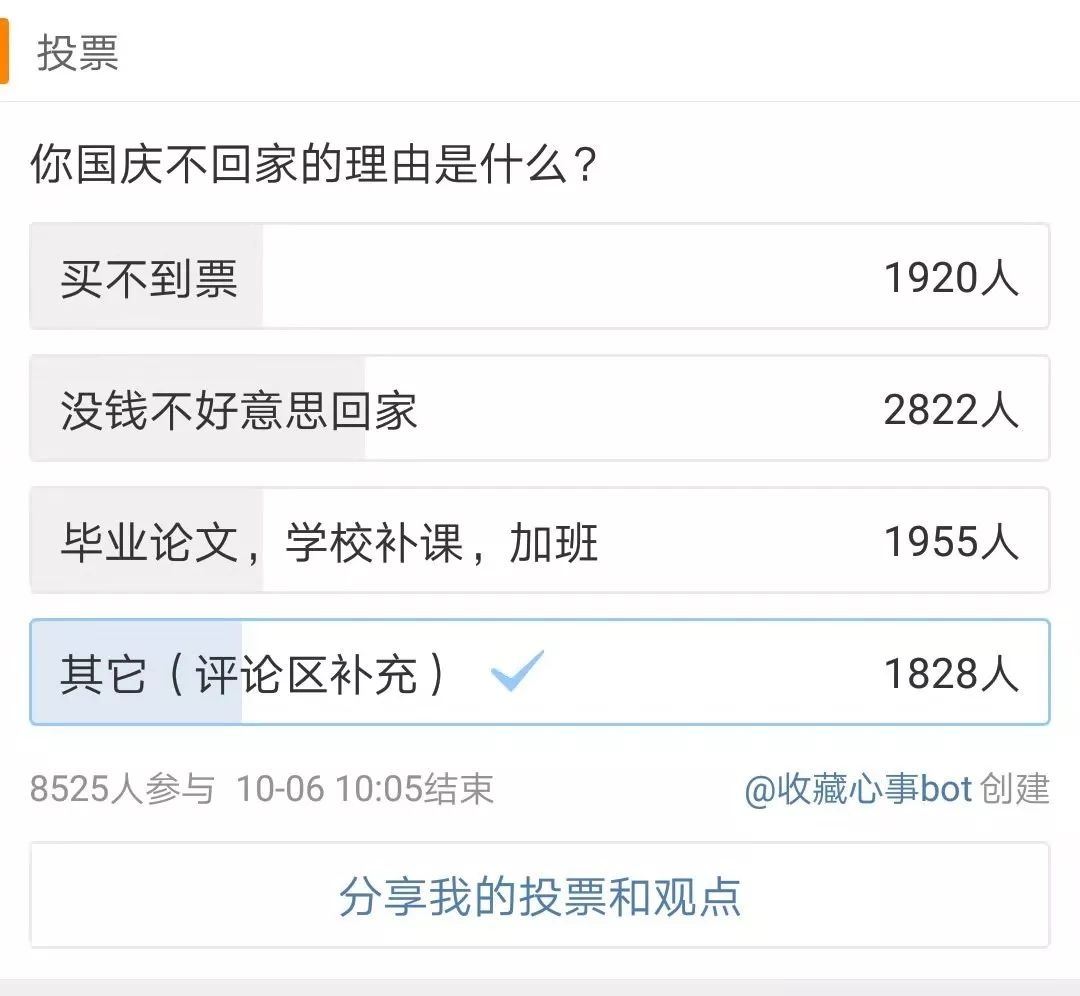 综合来看,这位网友的回答说出了大多数人国庆不回家的理由: