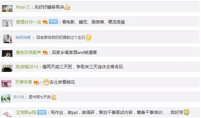从评论看,学生们表示要赶论文要补课,工作人群表示要加班要拿3倍工资,还有驴友们表示要去旅游放松身心......