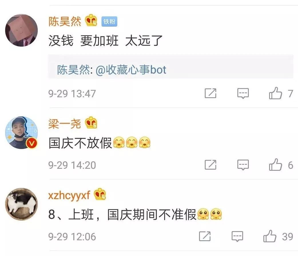 还有网友表示要用实际行动向祖国表白,加班献给祖国……