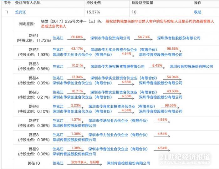 (启信宝统计竺兆江对传音控股路径)