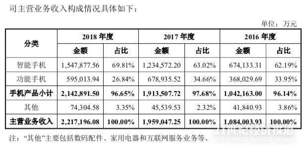 招股书显示,2016至2018年,传音的智能手机销量由1661万台增长至3406万台,智能手机的销售金额由67.41亿元增长至154.79亿元;功能机的销量由5896万台增长至9022万台,销售金额由36.8亿元增长至59.5亿元。功能机销量几乎是智能机的三倍。