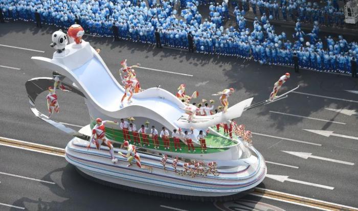 这是群众游行中的体育强国方阵。新华社记者 杨冠宇 摄