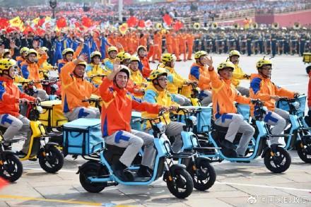 除了各界民营企业家之外,快递小哥、外卖小哥等新经济领域的职业群体代表首次亮相国庆群众游行队伍也引发了广泛关注。1949年至今,在天安门广场举行的历次国庆游行队伍中都会有农民、工人、教师、医生、学生等群众代表,但不同的年代也会有“新职业”出现。快递小哥、外卖小哥的出现是电商、O2O等新业态蓬勃发展的标志,也是中国数字经济时代的符号。
