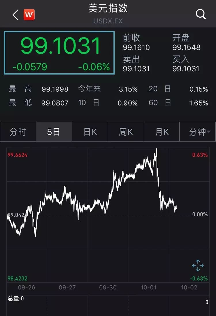美元持续上攻,昨天最高99.47,刷新207年5月以来最高位。分析人士指出,美元强势背后,经济数据的靓丽,美联储官员的言论愈发不及预期鸽派等都成为美元支撑因素。
