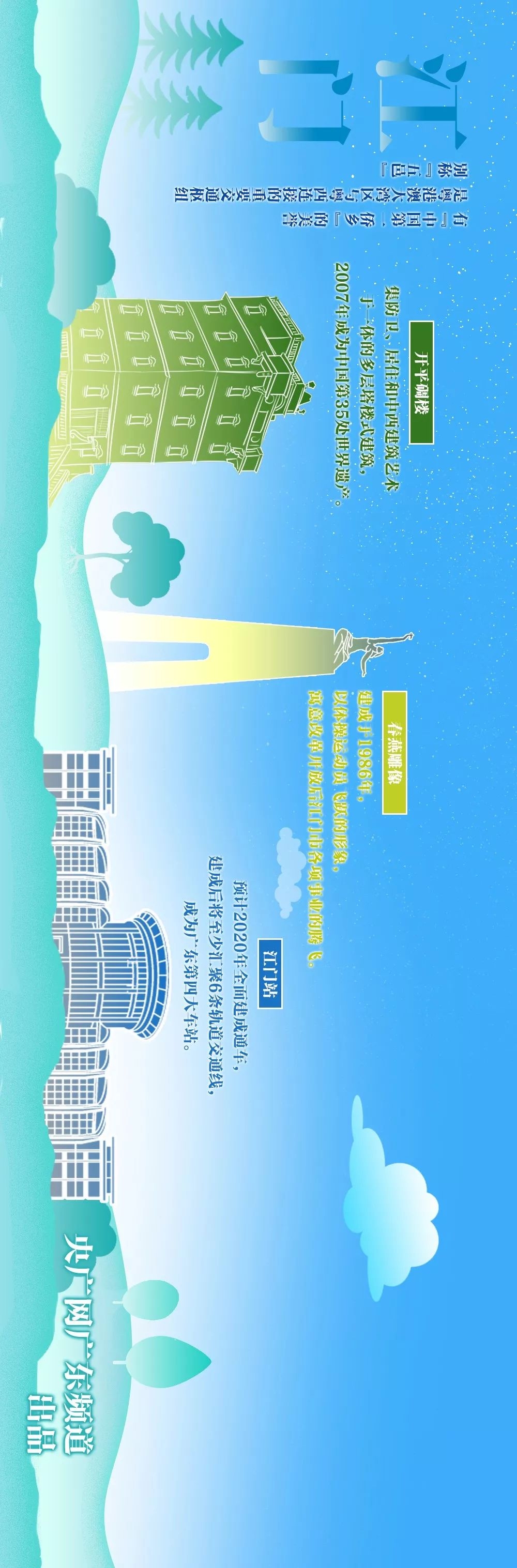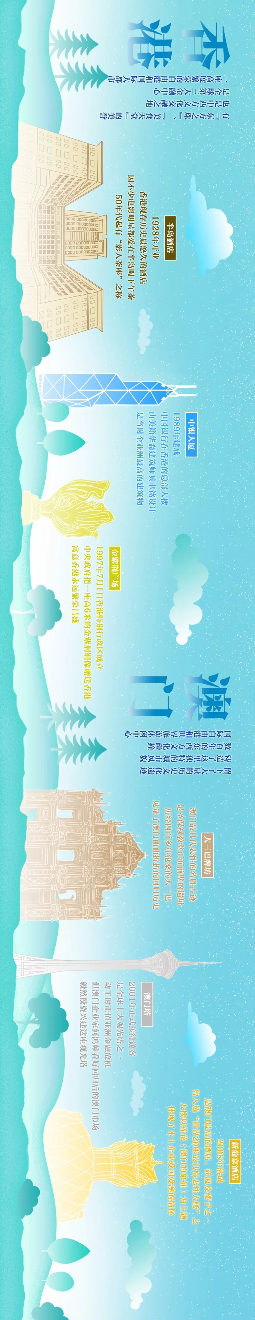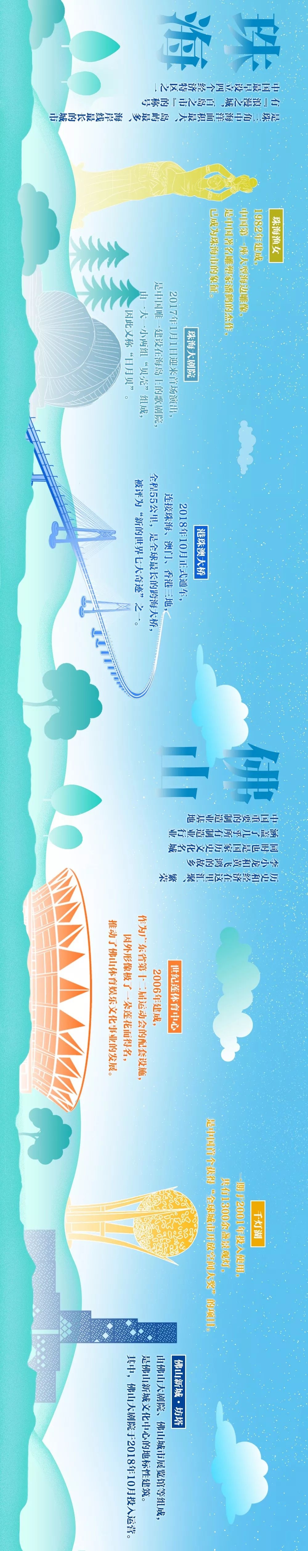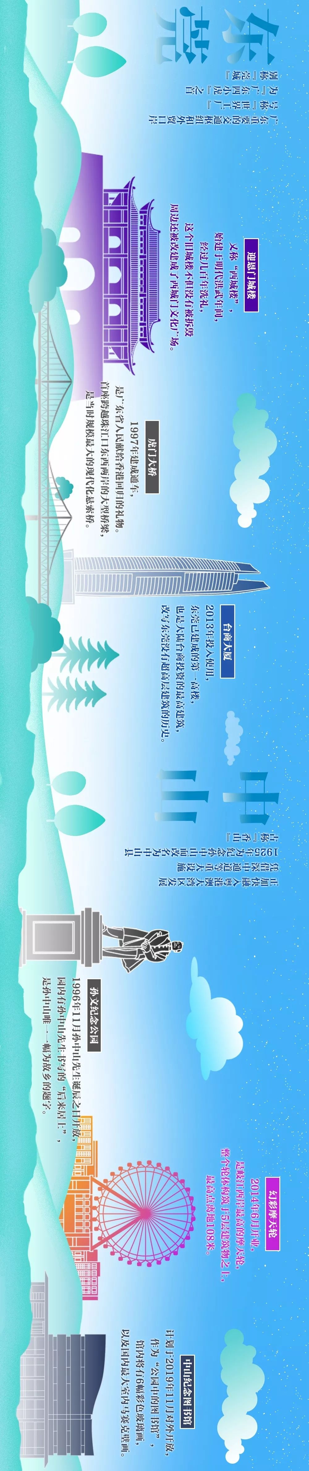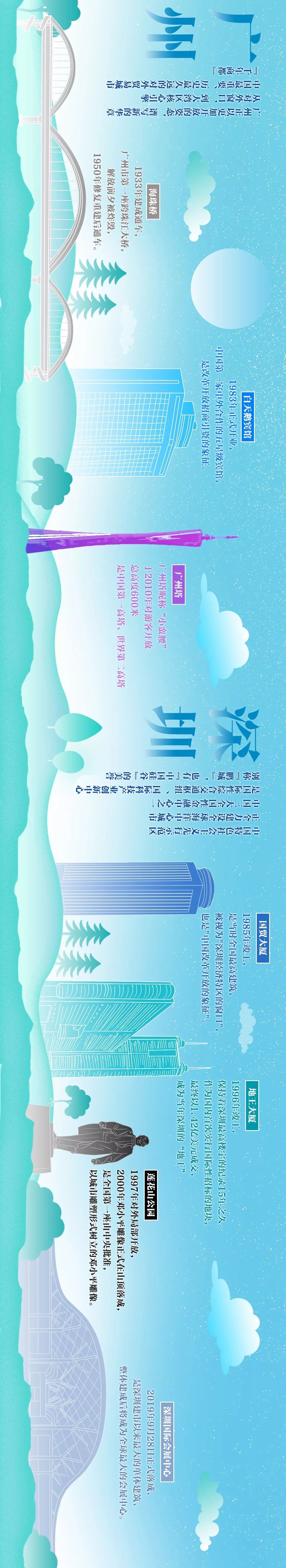 手绘横屏大长图!看大湾区城市70年地标变迁