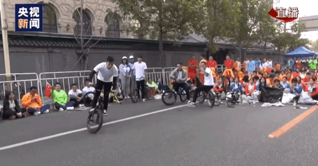 在国庆游行队伍中,有15名年轻人骑着小轮车,在天安门前平地跳跃、变换阵形,在长安街上耍酷!目前,BMX小轮车已经是奥运项目,这项运动也在国内迅速开展。从小轮车车手身上,我们看到了健康向上、拼搏进取的体育精神。
