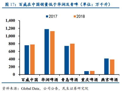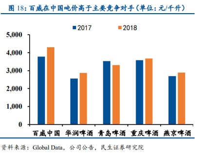 民生证券指出,不同于白酒,啤酒同质化严重,毛利率较低。因此,通过价格战抢占市场份额在很长时间内是国内啤酒市场竞争的主流逻辑。不过,受累于2014年起啤酒产量回落,叠加2016年下半年起包材等成本显著抬升,通过低价抢占市场的策略难以为继。