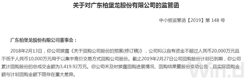 比如说,因“股票价格超出回购预案股价上限”的柏堡龙,仅完成了下限金额的1/3左右,还因未及时披露回购相关信息等原因而收到监管函。
