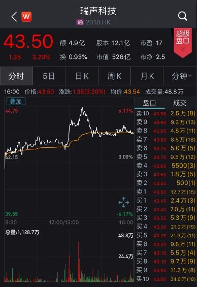 瑞声科技午后最高涨逾6%、通达集团最高涨超5%。截至收盘,通达集团涨3.57%、瑞声科技涨3.20%。