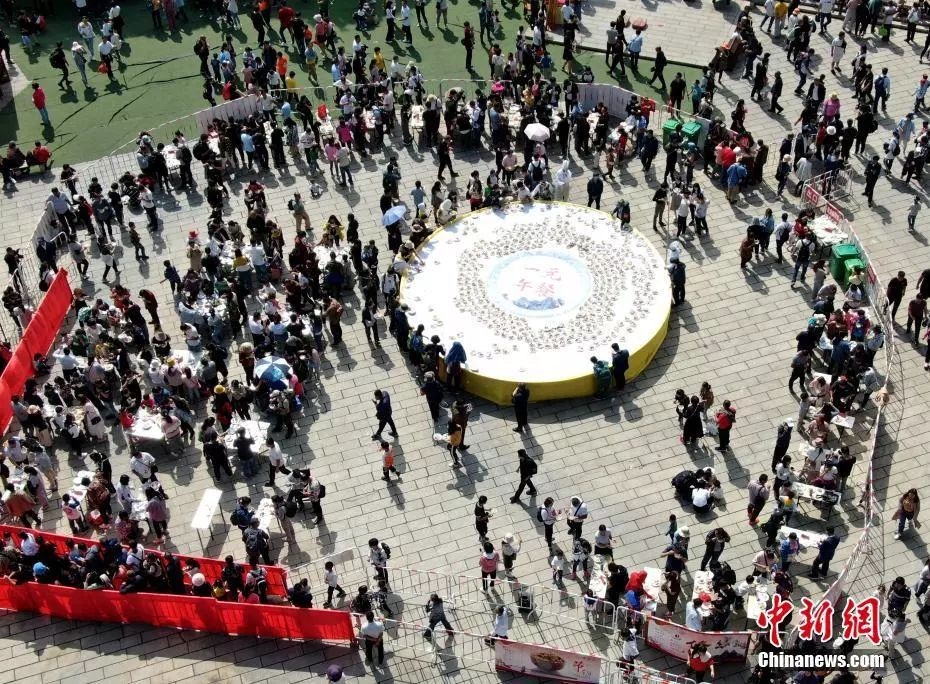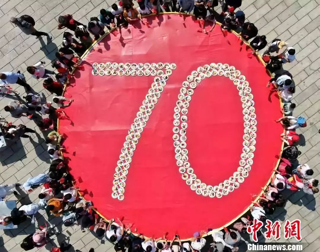 新中国成立70周年之际现场游客用中国吃“长寿面”的传统庆生习俗向祖国表白