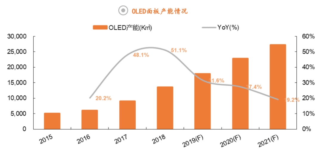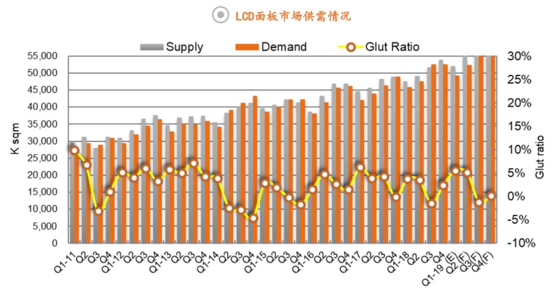 随着国内高世代面板产能的逐步释放,2019年全球LCD面板产能有望达到2.21亿平方米。尤其在国内面板厂产能不断释放下,LCD面板中期仍将持续供给过剩趋势,价格恐缓步下跌。