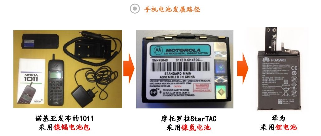 镍镉电池含金属镉,对环境有污染,并且电池记忆效应明显而电量又不占优势,对于需要随用随充的手机来说不太合适,逐步被淘汰。而镍氢电池,虽然十分环保,但具有较轻微的记忆效应,但随着技术的成熟这个问题已经得到缓解。相比锂离子电池,它在容量上存在硬伤,而且随着后者成本的降低,镍氢电池的成本优势不再,所以最终锂离子电池将二者取代。