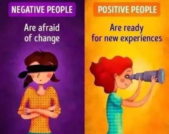 负能量的人害怕改变,正能量的人欢迎新机会到来。