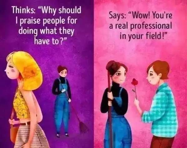 负能量的人觉得没必要称赞他人所做的事,正能量的人却往往会看到并赞赏他人的好。