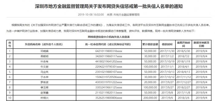P2P加速风险出清:深圳公布首批失信名单,逾期最高超1000天