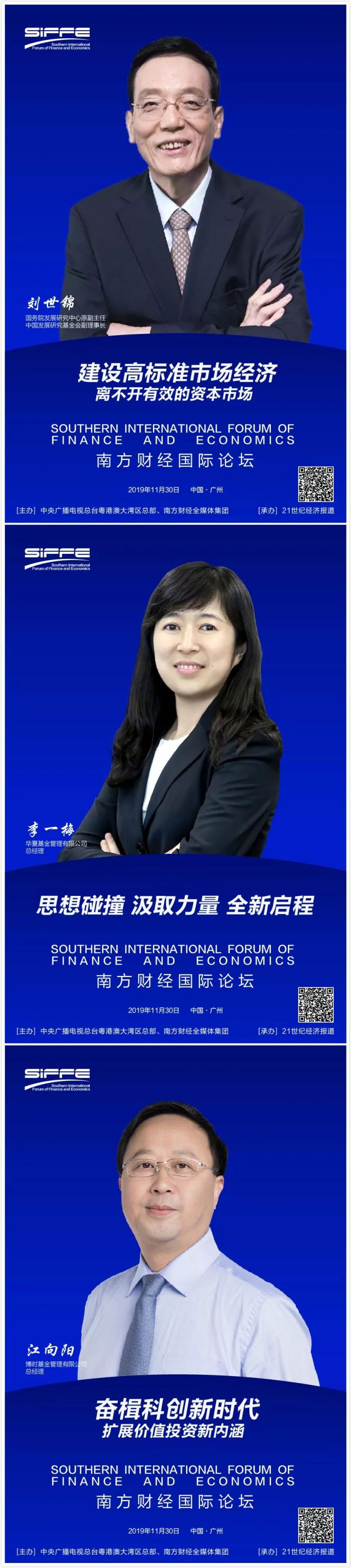 导读:由中央广播电视总台粤港澳大湾区总部、南方财经全媒体集团联合主办,21世纪经济报道承办,2019南方财经国际论坛11月30日将在广州隆重举行。时值佳期,围绕论坛主题“创新与开放的中国资本市场”,刘世锦、李一梅、江向阳等一波大咖,陆续为论坛发来寄语。更多嘉宾,持续更新中……