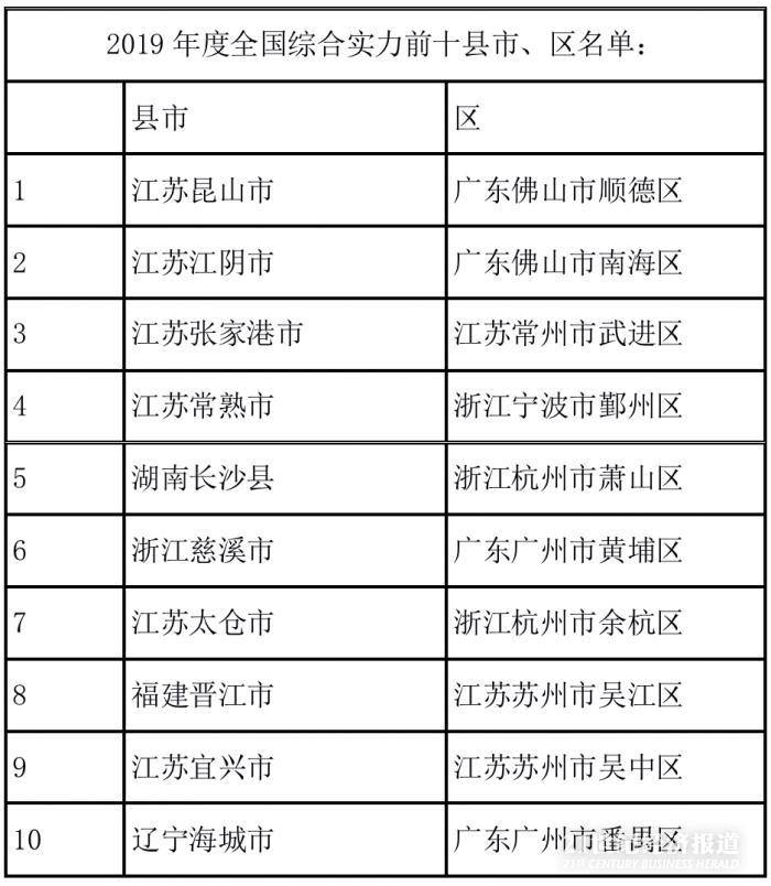 与此同时,榜单还显示,综合实力前十强的区则分别为:广东佛山市顺德区、广东佛山市南海区、江苏常州市武进区、浙江宁波市鄞州区、浙江杭州市萧山区、广东广州市黄埔区、浙江杭州市余杭区、江苏苏州市吴江区、江苏苏州市吴中区和广东广州市番禺区。